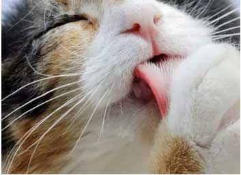 貓咪會盡量舔舐自己身體的大部分地方,并且針對不同部位舔毛也有不同目的。