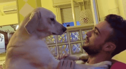 8,不放過任何一個可以舔你的機會,這是狗子表達愛的方式之一! 舔舐,確實是狗狗表達愛意的最日常的一種方式,畢竟狗媽媽就是這么教它們的... 它們并不知道自己的口水里都是細菌,只知道這代表了愛! 如果你不喜歡被舔,可以用揉頭和撫摸來反擊,然后讓它爽到都忘記要舔你這件事...